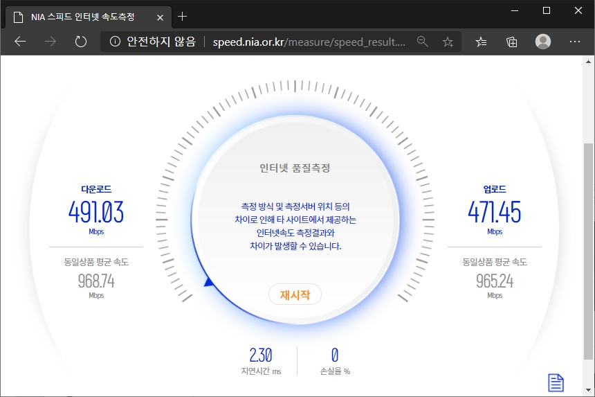 넷기어 RAX200 와이파이 공유기의 유선 인터넷 속도를 확인해 보면 KT 기가인터넷 500M의 속도를 완벽하게 지원하는 것을 확인할 수 있습니다. 스펙을 보면 더 빠른 인터넷을 사용하는 분들에게도 부족하지 않을 것 같습니다.
