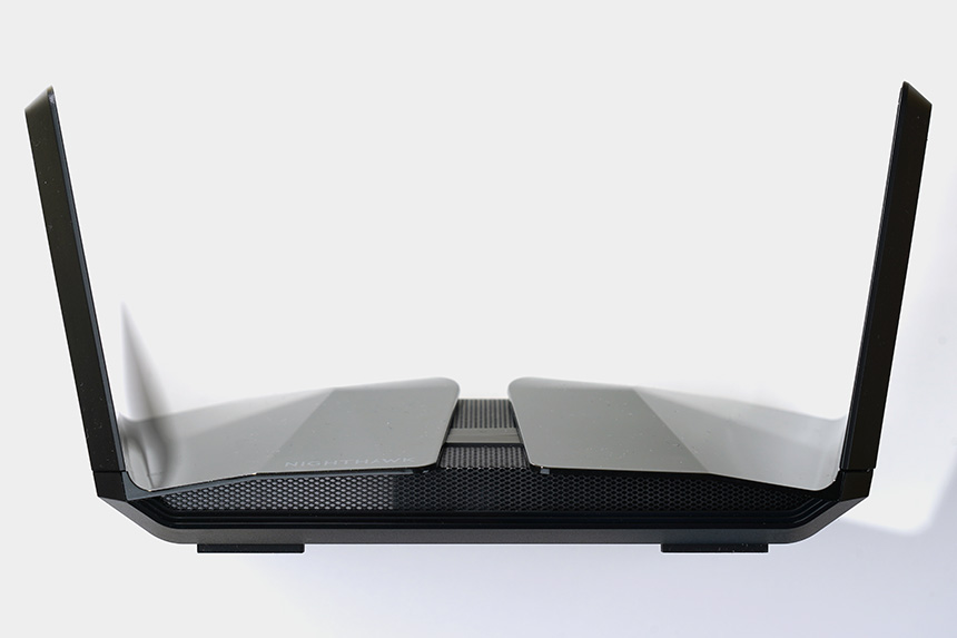 넷기어 RAX200 와이파이 공유기를 앞쪽에서 살펴보면 스타워즈 영화에서나 볼 것 같은 우주선처럼 제작되었습니다. 디자인적인 부분에서는 완성도가 상당히 높은 편이라고 생각되었습니다.