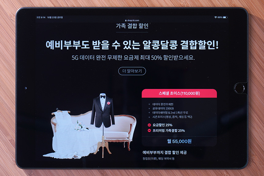 그리고 요금제의 가격이 부담되는 분들은 프리미엄 가족결합이라는 제도를 이용해서 할인을 받을 수 있습니다. 그리고 재미있는 부분은 아직은 법적으로 가족이 아닌 예비 부부들도 혜택을 받을 수 있다는 점입니다.