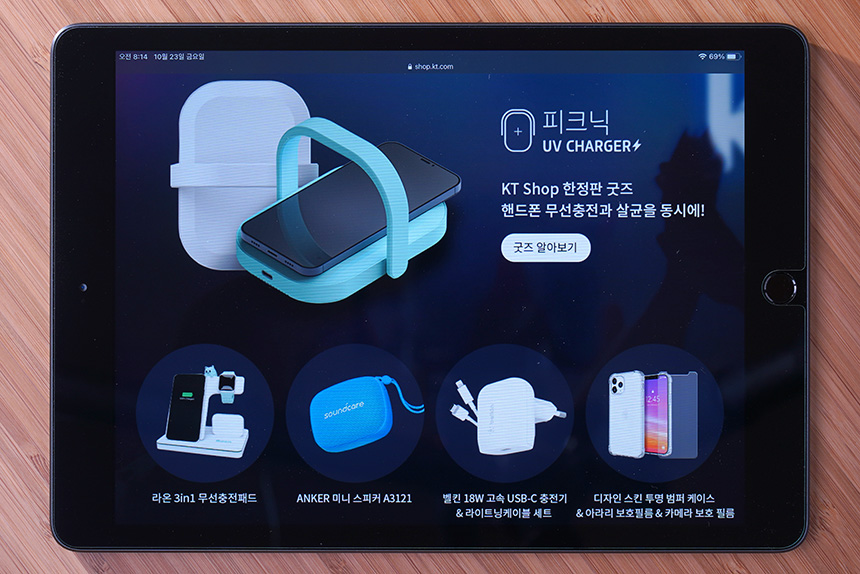 그리고 KT 샵에서는 코로나 시대를 맞이해서 피크닉 UV CHARGER나 라온 3in1 무선충전패드, ANKER 미니 스피커 A3121, 벨킨 18W 고속 USB-C 충전기 & 라이트닝 케이블 세트, 디자인 스킨 투명 범퍼 케이스 & 아라리 보호필름 중의 하나를 제공합니다. 참고로 아이폰 12에는 환경 문제 때문에 구성품에서 충전기가 빠졌습니다.