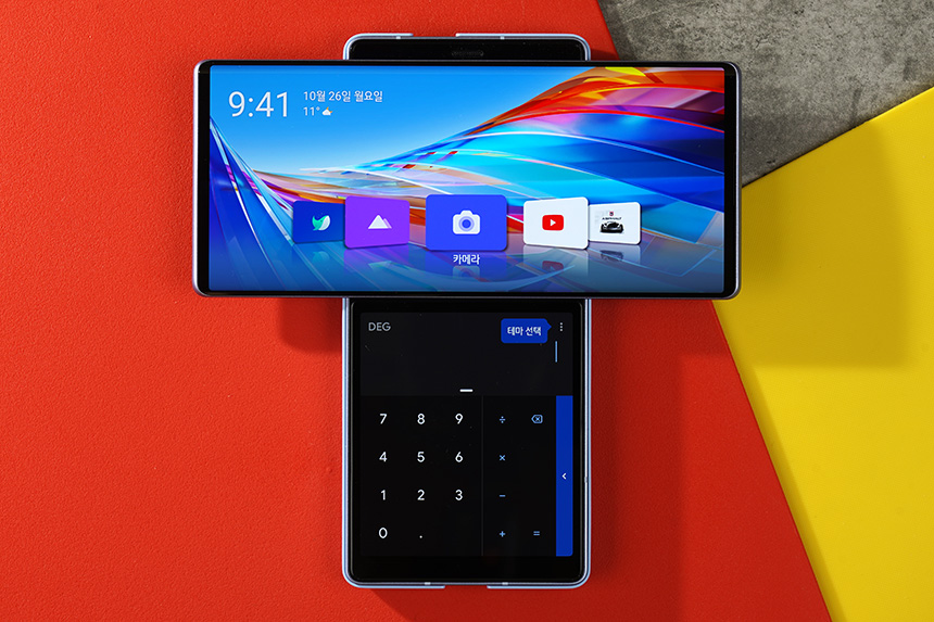 스위블 모드에서 메인 스크린을 위로 쓸어 올리면 LG 윙(WING)에 설치되어 있는 앱들을 실행시킬 수 있습니다. 사용법은 일반적인 스마트폰과 크게 다르지 않은 편입니다.