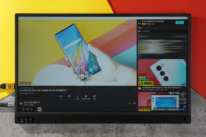 그리고 유튜브 영상들도 시청할 수 있습니다. 그렇지만 LG 윙(WING)의 배터리 성능이 한계가 있어서 장시간 시청하는 것은 어려울 것 같습니다. 펜션을 갔을 때 아이들을 달래는 등의 용도로 잠깐 동안 활용하는 것이 좋을 것 같습니다.