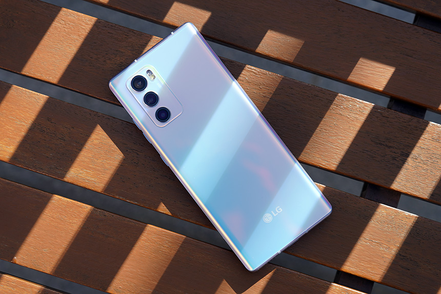 LG 윙(WING)의 색상은 무광의 일루전 스카이와 유광의 오로라 그레이 두 종류로 출시되었습니다. 특히 스카이는 빛의 반사에 따라서 컬러가 달라지는데요. 상당히 세련된 느낌을 주는 편입니다. 그리고 스위블 스마트폰으로 설계되었지만, 만듦새가 좋은 편이어서 유격이 거의 느껴지지는 않았습니다.