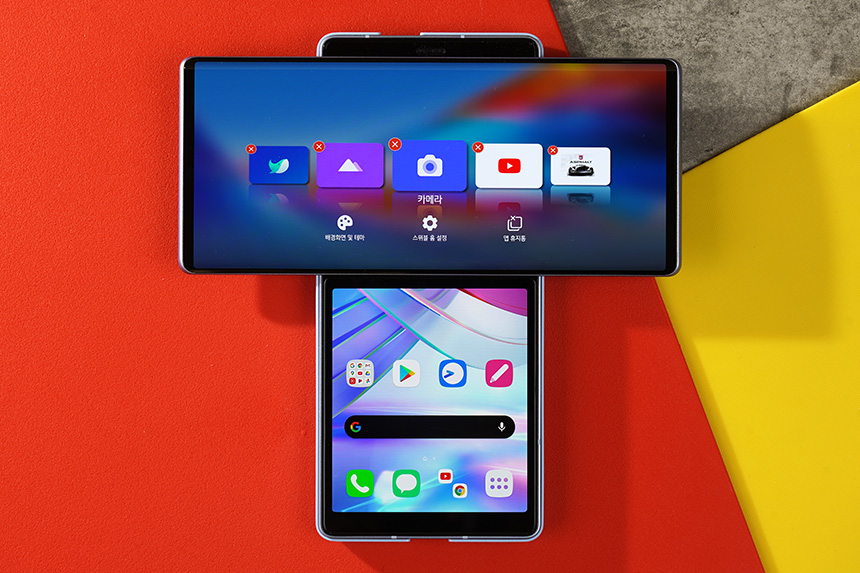 스위블 모드에서 메인 스크린을 위로 쓸어 올리면 LG 윙(WING)에 설치되어 있는 앱들을 실행시킬 수 있습니다. 사용법은 일반적인 스마트폰과 크게 다르지 않은 편입니다.