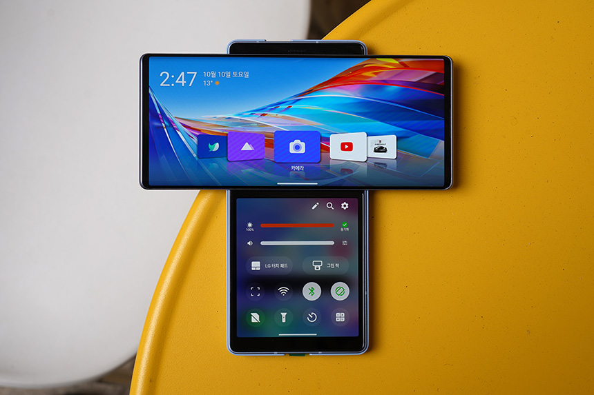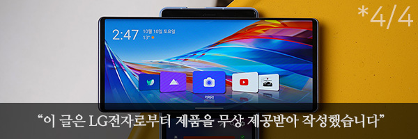 LG전자에서는 기존에 없던 전혀 새로운 스위블 폼팩터 스마트폰 LG 윙(WING)을 공개했습니다. 실제로 약 한 달 동안 사용하면서 동영상 재생과 동시에 다른 작업을 하기 원하는 분들을 위한 제품이라는 느낌을 받았습니다. 그럼 이번 후기에는 어떤 장단점을 가졌는지 자세하게 살펴보도록 하겠습니다. 그리고 데스크톱 모드 사용법은 아래쪽에 배치되어 있습니다.