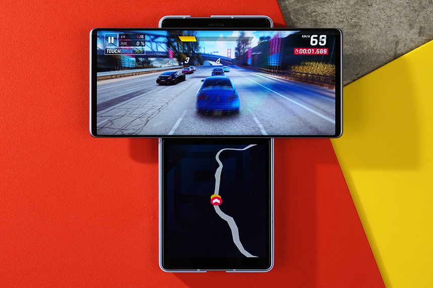 LG 윙(WING)의 세컨드 스크린은 게임을 할 때도 활용할 수 있습니다. 우선 아스팔트 9: 레전드의 경우에는 세컨드 스크린에 지도가 표시됩니다. 다른 게임들로 기능들이 확대되면 좋을 것 같습니다.