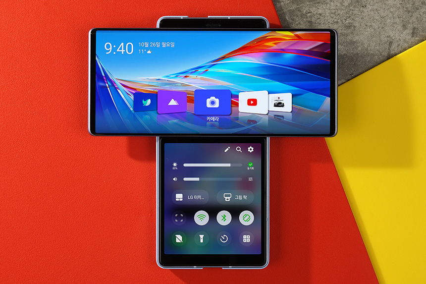 LG 윙(WING)의 세컨드 스크린에는 빠른 설정창 기능이 탑재되어 있습니다. 스위블 모드에 특화된 기능이라고 할 수 있는데요. 다양한 기능들을 빠르게 실행시킬 수 있다는 장점이 있습니다.