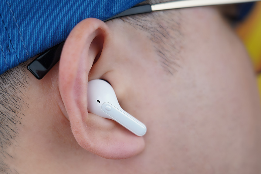LG 톤 프리 HBS-TFN7의 이어버드는 인체공학적 설계가 적용되었고 웨이브 폼 이어젤과 합쳐져서 편안한 착용감을 제공합니다. 그래서 장시간 착용해도 부담이 적은 편입니다. 그리고 귀에 잘 밀착되기 때문에 외부 소음 차단 성능도 우수한 편이라고 판단되었습니다. 실제로 액티브 노캔 성능이 뛰어나도 외부 소음이 제대로 차단되지 않으면 효과를 체감하기 어렵습니다.