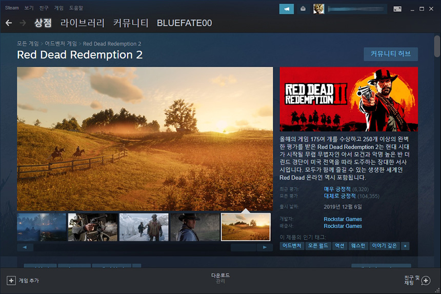 레드 데드 리뎀션 2는 할로윈 할인에는 포함되지 않은 작품이지만 같은 시기에 할인 판매를 진행하고 있습니다. GTA 시리즈로 유명한 락스타 스튜디오에서 제작한 작품인데요. 최고의 겡미 중의 하나라는 평가를 받고 있습니다. 참고로 평소 판매 가격은 66,000원이고 33% 할인해서 44,220원에 구매를 할 수 있습니다.