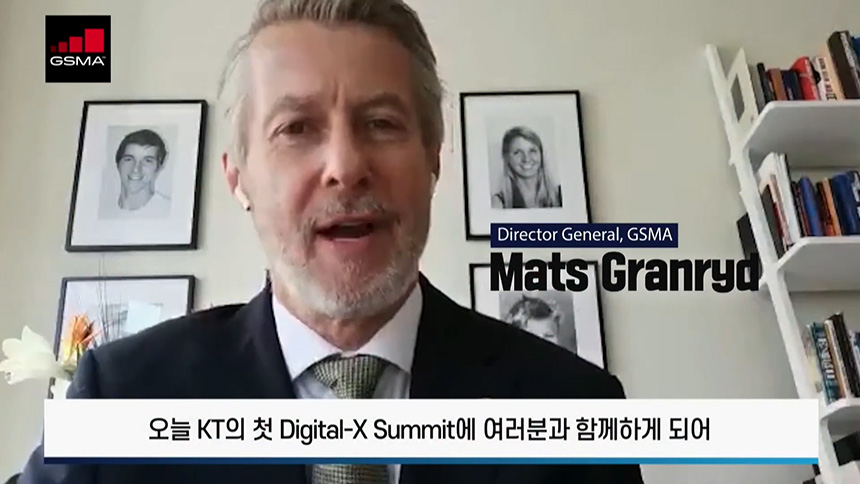KT Digital-x Summit 2020은 Mats Granryd GSMA 사무총장과 ITU 사무총장 Houlin Zhao ITU 사무총장의 축하 영상으로 시작되었습니다. 참고로 GSMA(세계이동통신사업자연합회)는 MWC를 주최하고 있고 ITU(국제전기통신연합)는 유무선 통신의 규칙과 표준을 개발 보급하고 있습니다.