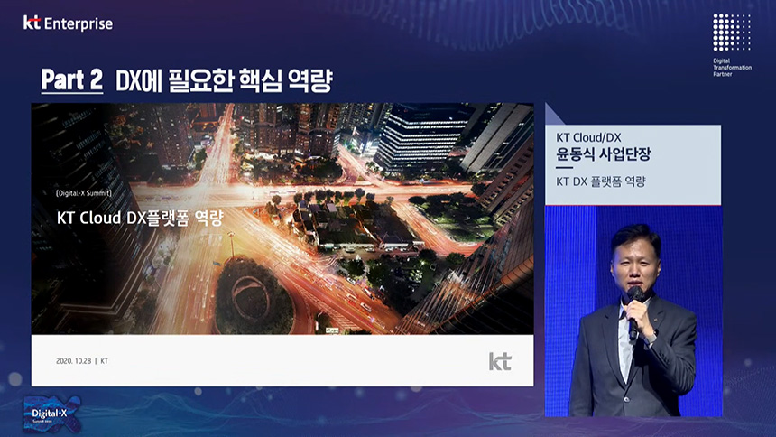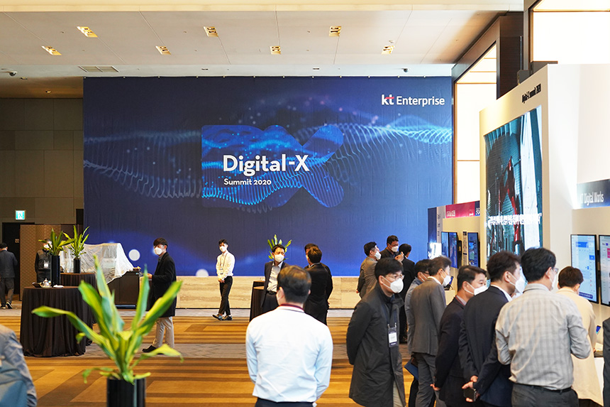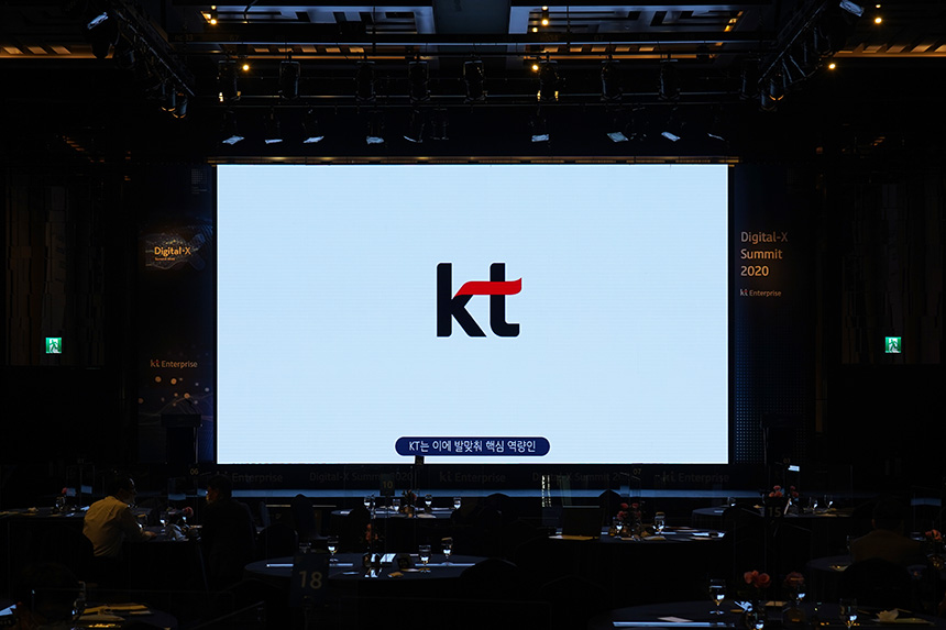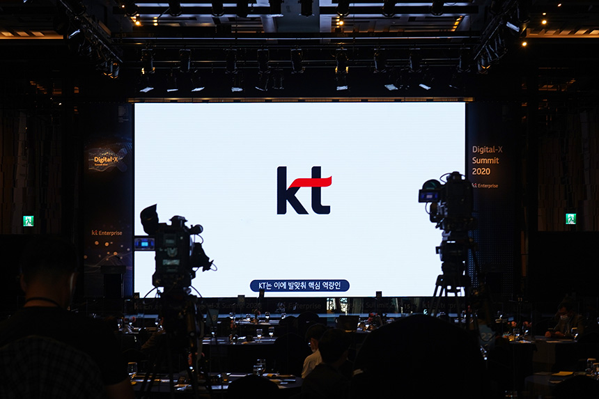 KT Digital-x Summit 2020은 2020년 10월 28일 서울 그랜드 인터컨티넨탈 파르나스 호텔에서 진행되었습니다. 그리고 행사는 사회적 거리두기 1단계에 맞게 오프라인 참석 인원은 최소화되었고 온라인 생중계가 동시에 진행되었습니다.