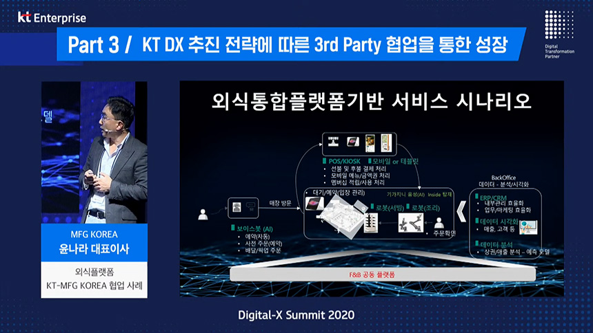 세 번째 섹션은 매드 포 갈릭이라는 회사를 운영하는 MFG KOREA 윤나라 대표이사님께서 “외식 플랫폼 KT-MFG KOREA 협업 사례”에 대해서 자세하게 설명해 주셨습니다.
