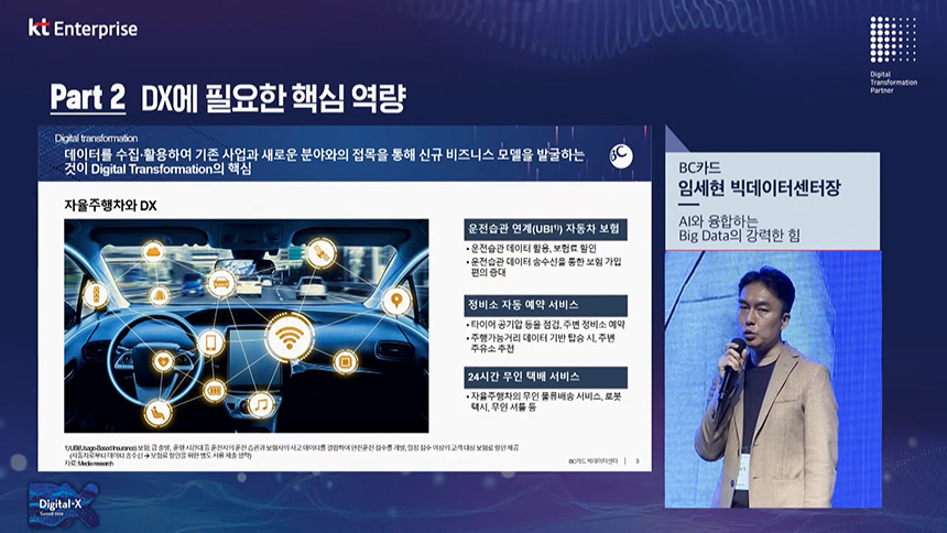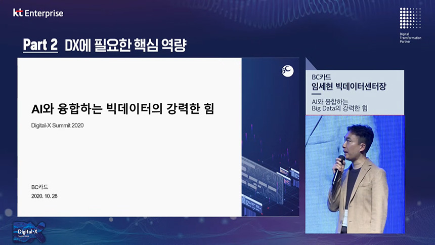 파트2의 마지막 섹션은 “AI와 융합하는 Big Data의 강력한 힘”이라는 내용으로 임세현 BC카드 빅데이터센터장께서 발표를 맡아주셨습니다. 참고로 BC카드의 모기업은 KT입니다.