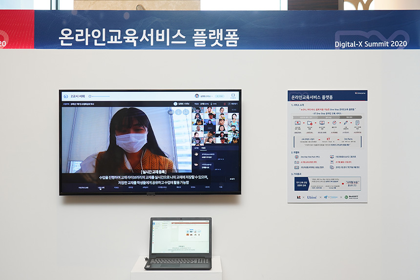 KT는 온라인교육 서비스 플랫폼도 가지고 있습니다. 코로나 19 팬데믹 시대에 가장 빠르게 발전하고 있는 솔루션 중의 하나라고 할 수 있습니다. 특히 KT에서 출시한 플랫폼은 One-Stop Total Pack 서비스와 다중 영상합성 실시간 그룹 토론과 AI 자동 출결, 수업 관리 기능을 제공한다는 장점이 있습니다.