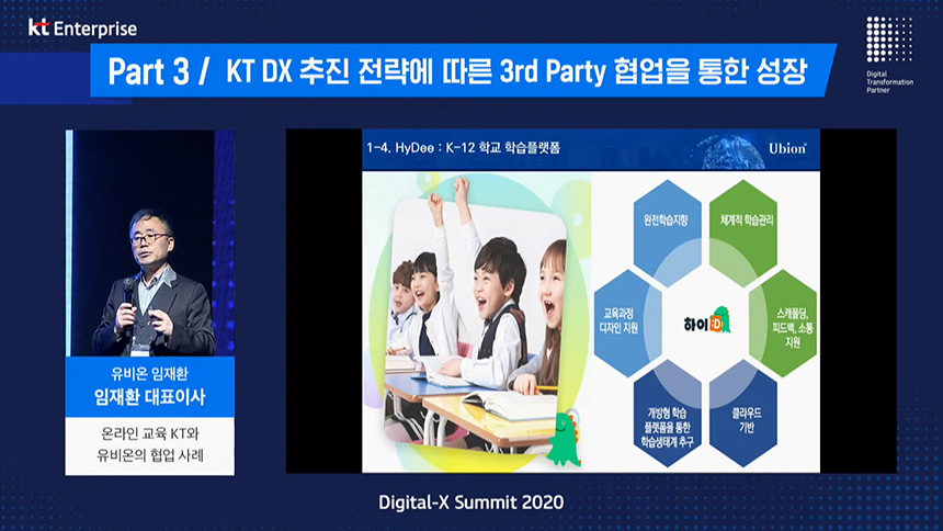 두 번째 섹션은 “온라인교육 KT-유비온 협력 사례”라는 내용으로 임재환 유비온 대표이사님께서 세미나를 진행해주셨습니다. 원격교육은 코로나 19 시대에 가장 큰 주목을 받고 있습니다.