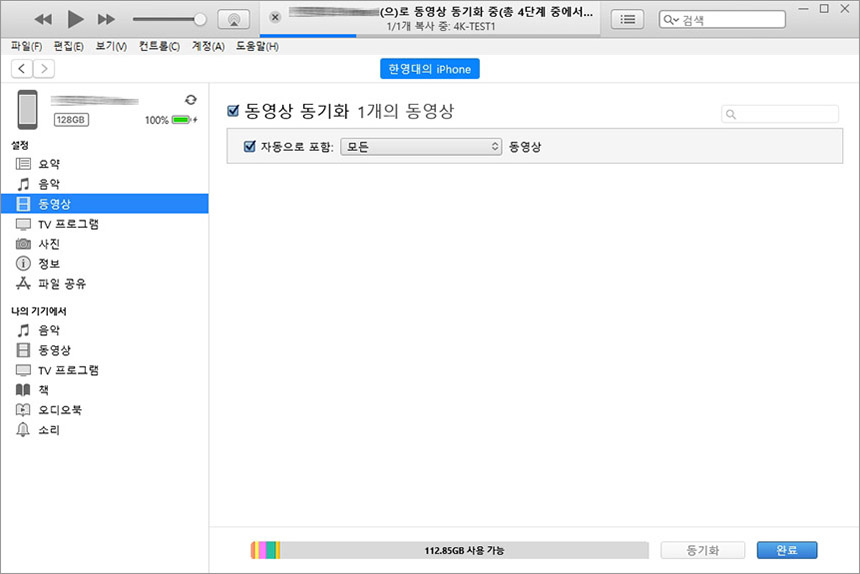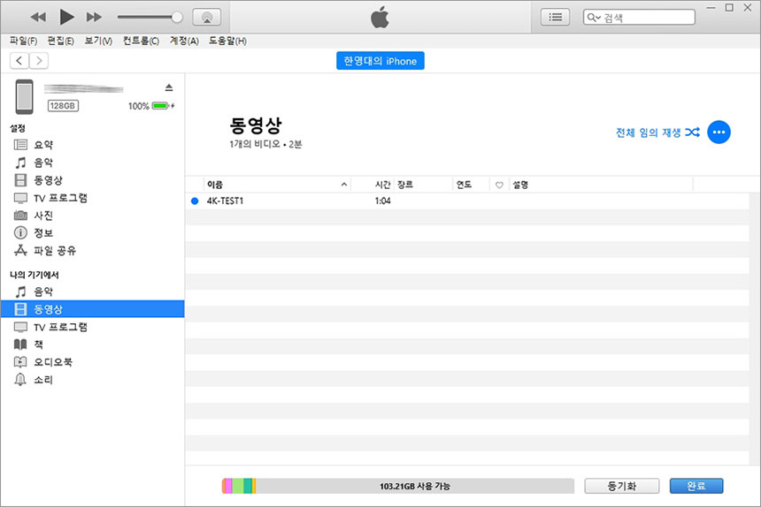 동영상 같은 경우에는 이상하게 드래그로 보관함에 추가할 수 없고 파일 – 보관함에 파일 추가나 폴더 추가 기능을 이용해서 일단 아이튠즈에 먼저 등록한 후에 아이폰으로 전송해주어야 합니다. 이러한 부분들은 안드로이드 스마트폰과 비교해서 굉장히 불편한 부분들입니다,
