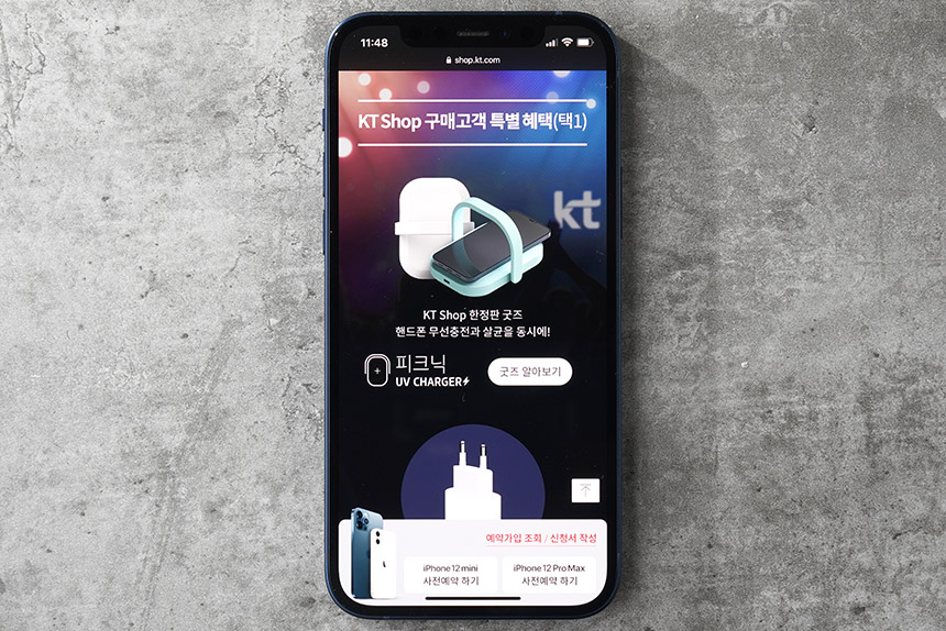 그래서 KT에서는 아이폰 12 구매 고객을 위해서 다양한 혜택을 준비해 놓았습니다. 우선 KT 샵에서는 한정판 굳즈인 피크닉 UV CHARGER나 애플 정품 충전기(18W USB-C 전원 어댑터) 그리고 스타벅스 플래너 + 미니포켓 세트 등의 사은품 중에서 하나를 선택할 수 있습니다.