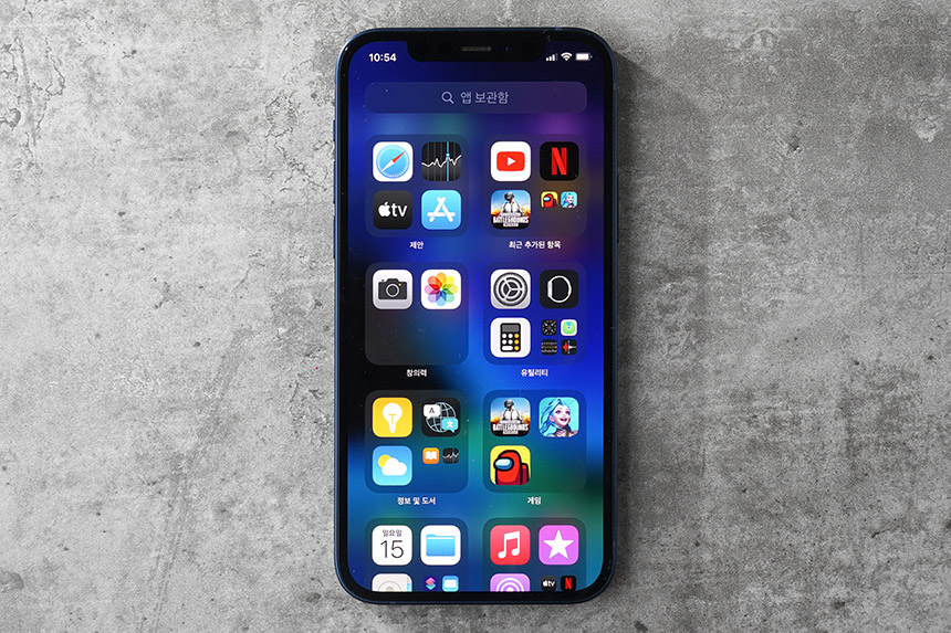 그리고 앱 보관함이라는 기능이 추가되었습니다. 홈 화면의 가장 오른쪽에 배치되어 있는데요. 아이폰 12에 설치되어 있는 앱들이 카테고리별로 정리됩니다. 사용자가 신경을 쓰지 않아도 된다는 점이 편리한 부분입니다.