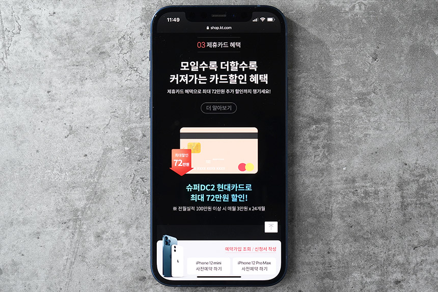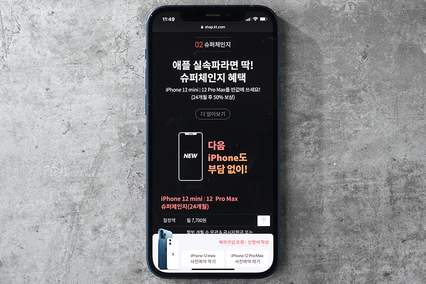 그리고 KT에서 슈퍼찬스라는 혜택을 제공하고 있습니다. 일종의 렌탈 프로그램이라고 할 수 있는데요. 서비스에 가입하고 아이폰 12를 1년간 사용 후 반납하면 됩니다. 매년 새로운 아이폰을 사용하려는 분들에게 적합할 것 같습니다.