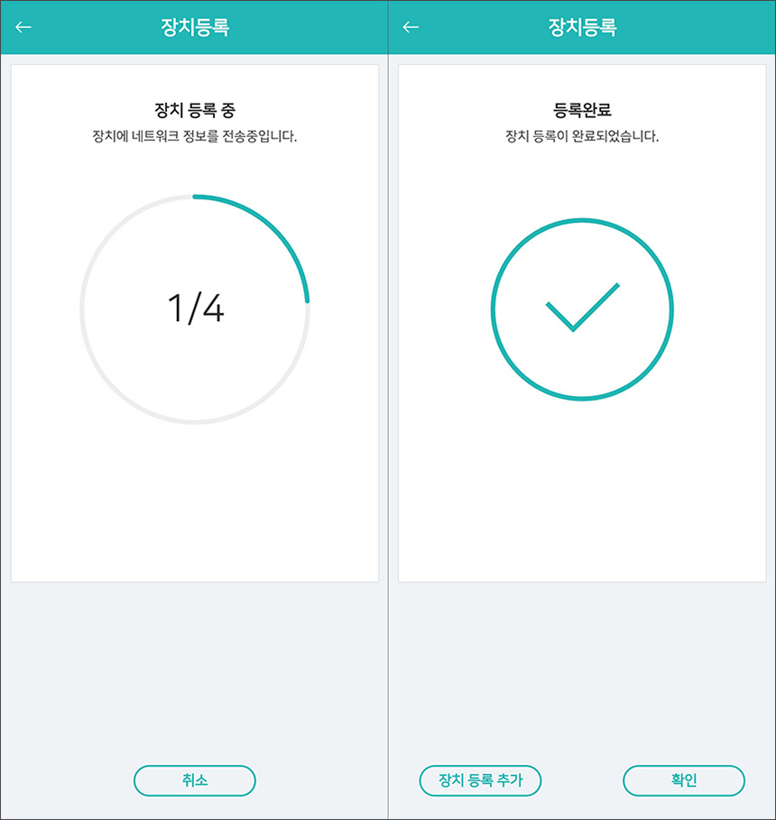그러면 장치가 등록되기 시작합니다. 초기 설정 과정이 조금 복잡할 수 있지만, 차분히 따라가면 어렵지는 않은 편입니다. 그리고 가끔 제품이 초기화될 수 있는데요. 다시 연결해주면 됩니다.