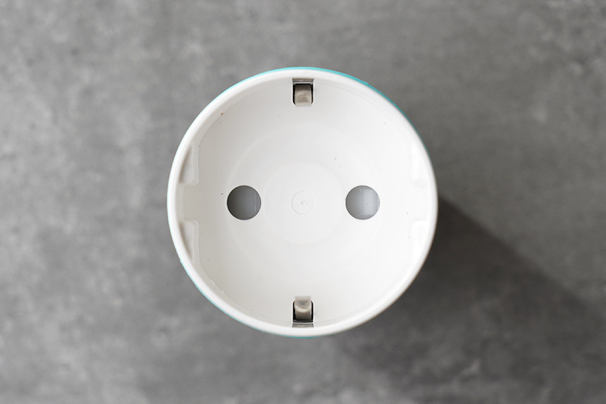 파워매니저 AI 스마트플러그는 콤팩트한 형태로 제작되었습니다. 그리고 저면에는 AI POWER MANAGER라는 문구와 함께 상태를 보여주는 LED가 내장된 스위치가 배치되어 있습니다.
