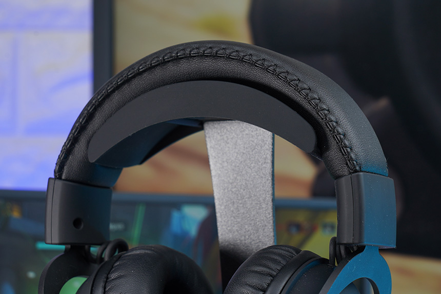로지텍 G PRO X 헤드셋의 헤드밴드도 인조가죽 소재로 제작되었습니다. 디자인적인 부분에서도 완성도가 높은 편이고 쿠션도 넉넉하게 들어 있어서 정수리 부분이 불편하지 않았습니다.