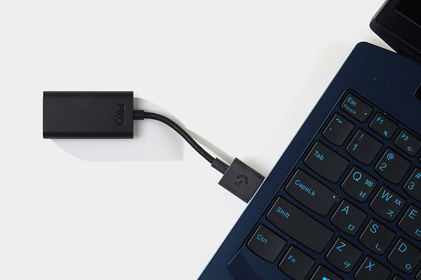 로지텍 G PRO X 헤드셋은 동봉된 USB 사운드 카드를 이용해서 컴퓨터에 연결할 수 있습니다. 그래서 다른 3.5mm 유선 게이밍 헤드셋과는 다르게 DTS 헤드폰:X나 블루 보이스 등 다양한 기능을 사용할 수 있습니다.