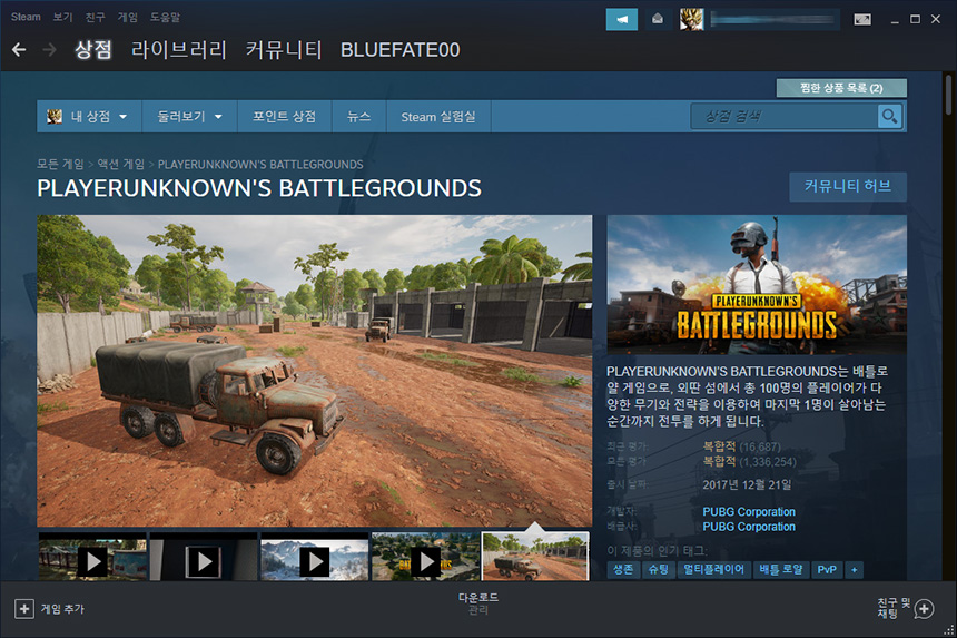 국내 게이머들에게 인기 있는 게임 중의 하나는 배그(배틀그라운드)라고 할 수 있습니다. 물론 예전과 같은 인기는 없지만 가끔 플레이하기에는 아직도 재미가 있습니다. 그리고 할인 가격은 16,000원입니다.