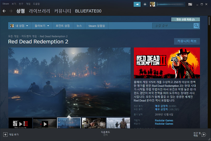 레드 데드 리뎀션 2(Red Dead Redemption 2)는 우리에게 익숙한 GTA 시리즈의 악스타 스튜디오의 작품입니다. 서부 시대를 중심으로 다양한 이야기들이 펼쳐지는데요. 게이머들의 평가는 최고 수준이라고 할 수 있습니다. 그리고 세일 가격은 44.220원입니다.