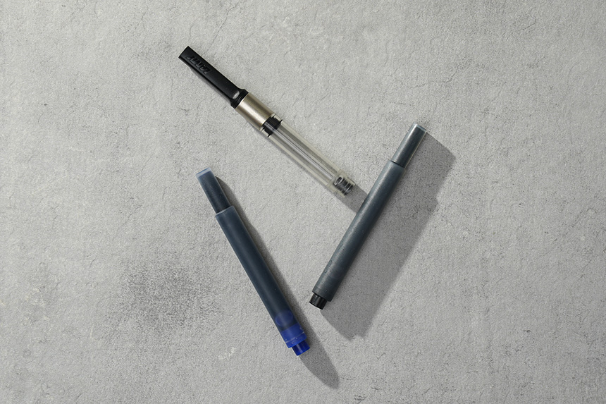 라미 만년필에는 컨버터나 잉크 카트리지 두 가지 방식으로 사용할 수 있습니다. 필기량이 많지 않은 분들은 잉크 카트리지를 활용하는 것이 좋을 것 같습니다. 조금 더 깔끔한 편입니다.