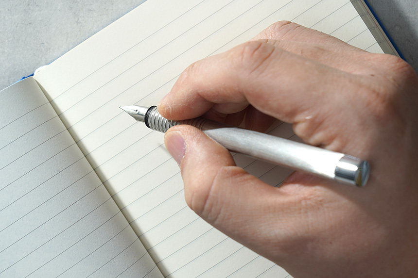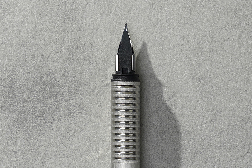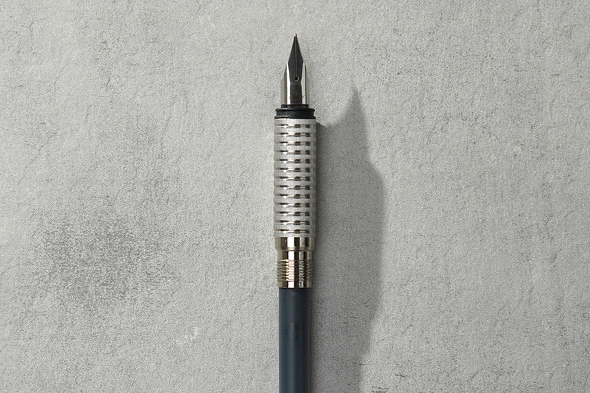 라미 만년필에는 폴리쉬드 스틸 펜촉이 적용되었습니다. 저는 F촉을 구매했는데요. 약간 두꺼운 편입니다. 그리고 그립존에 홈처리가 되어 있어서 손에서 잘 미끄러지지 않는 편입니다.