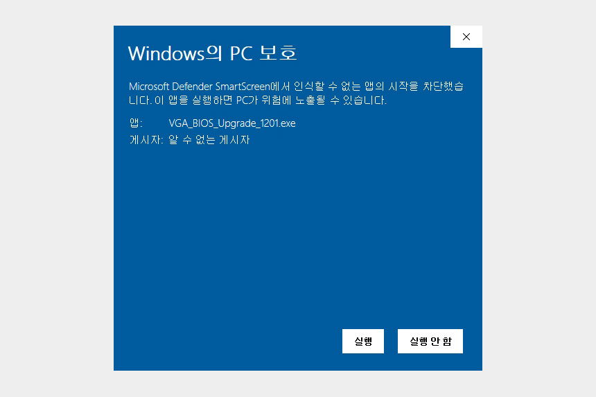 그래도 설치를 하려는 분들은 약 3.6M 용량의 파일을 다운로드 받은 후에 실행을 시켜주면 위와 같이 Windows의 pc 보호 관련 멘시지가 표시됩니다. 여기서부터는 자신의 선택이라고 할 수 있습니다.