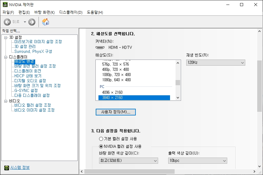 제가 이엠텍 RTX 3070 블랙 에디션를 구매한 이유는 HDMI 2.1을 지원하고 4K 120Hz 그리고 출력 색상 깊이를 10bpc로 설정할 수 있기 때문입니다. HDMI 포트만 탑재한 고성능 TV를 모니터로 사용하려는 분들에게는 선택지가 많지 않습니다.