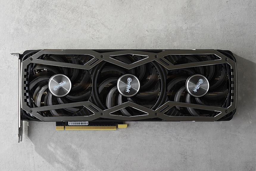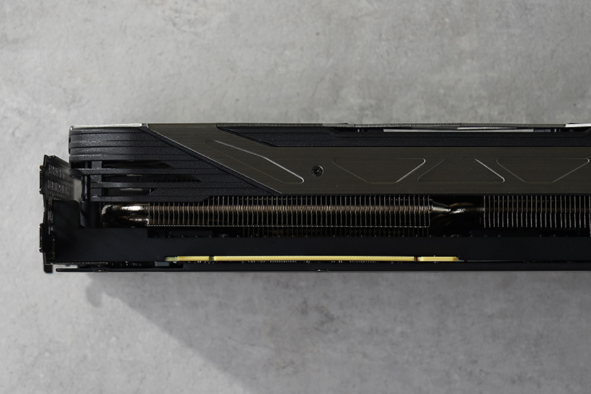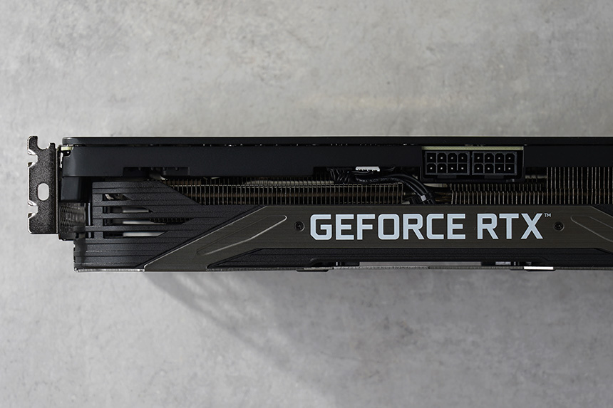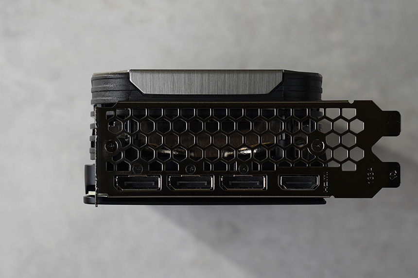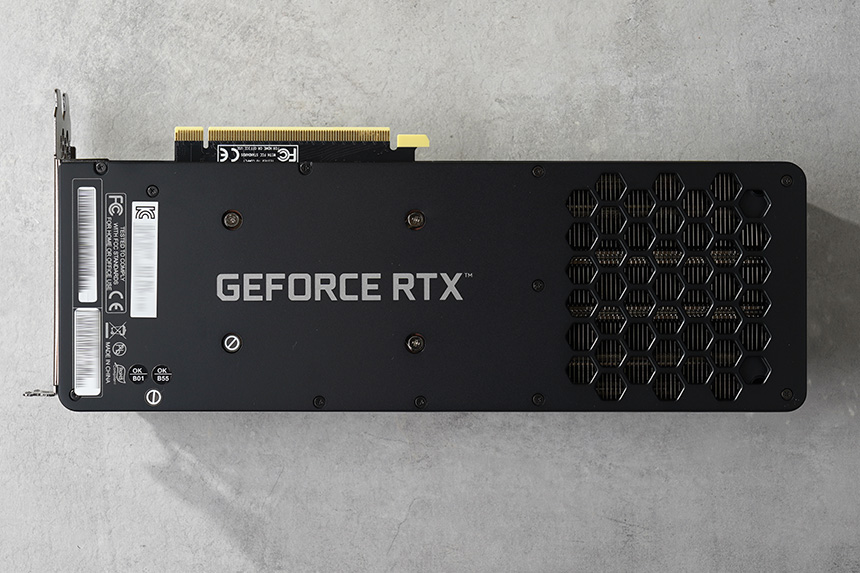 이엠텍 RTX 3070 블랙 에디션의 뒷면에는 알루미늄 합금 백플레이트가 탑재되었습니다. 그래서 PCB 기판이 외부로 노출되는 것을 방지해주고 상대적으로 안정적으로 그래픽 카드를 사용할 수 있습니다.