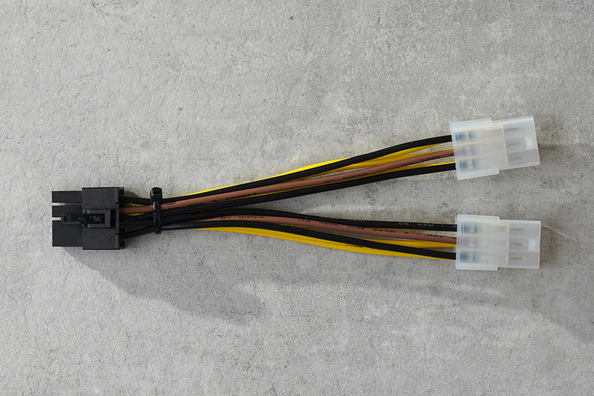 2개의 6핀 파워 케이블을 이용해서 8핀 파워 커넥터를 만들어주는 젠더도 하나 포함되어 있습니다. 참고로 2개의 8핀 커넥터가 필요하므로 구매 전에 파워 서플라이를 먼저 확인해 보아야 합니다.
