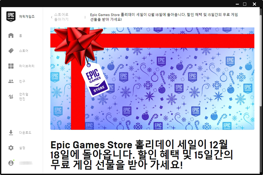 에픽게임즈 홀리데이 세일은 15일간 매일 새로운 게임들을 공개할 예정입니다. 그리고 루머로는 호라이즌 제로 던이나 위처 3 등 정말 엄청난 수준의 대작들이 포함되어 있을 수 있다고 하는데 역시 이번에도 루머는 틀렸습니다.