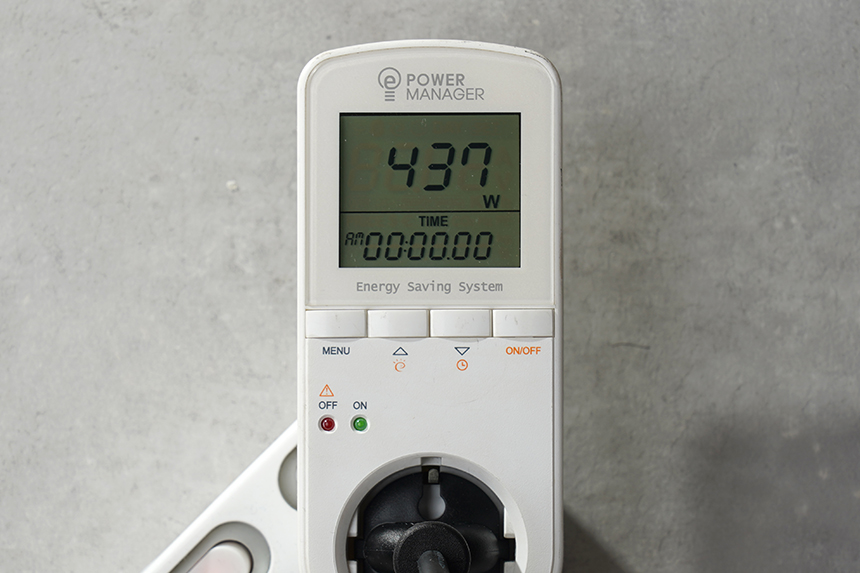 소싱 웜베이비 미니 온풍기 시즌2의 소비전력을 살펴보면 약 437W가 측정되었습니다. 일정하지는 않은 편이고 약간씩 변했습니다. 데스크톱 컴퓨터와 같다고 할 수 있습니다.
