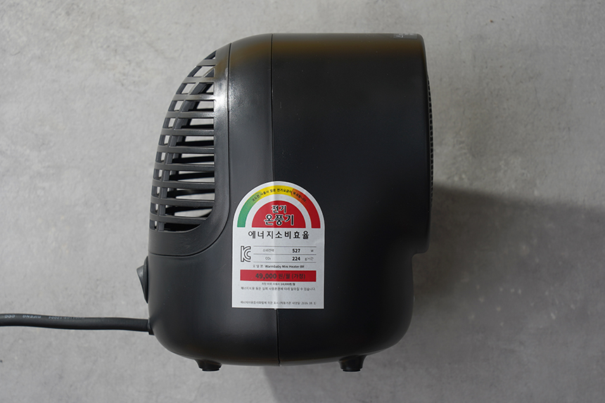 위쪽에는 소싱 웜베이비 미니 온풍기 시즌2를 사용할 때 과열이 되는 것을 방지하기 위해서 위쪽에 무언가를 덮어놓지 말라는 문구도 표시되어 있습니다. 사용할 때 주의해주어야 할 것 같습니다.