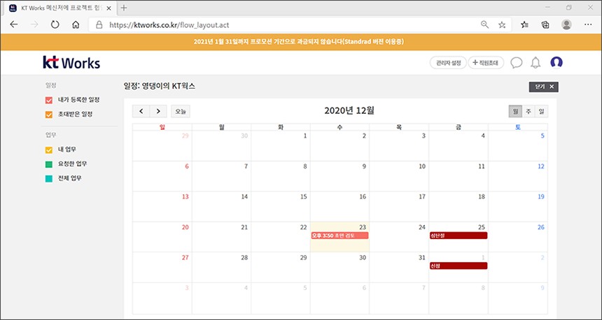 일정에서는 날짜별로 업무들을 정렬할 수 있습니다. 이러한 데이터들을 지속해서 쌓아간다면 업무를 더욱 직관적으로 파악할 수 있고 결과적으로 효율성을 높일 수 있습니다.