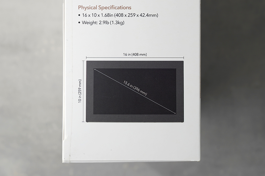 넷기어 뮤럴 MC315 디지털 액자의 물리적인 규격도 설명되어 있는데요. 크기는 408 x 259 x 42.4mm이고 무게는 약 1.3kg입니다. 일반적인 가정에서 사용하기에 부담스럽지 않은 편이라고 생각되었습니다.