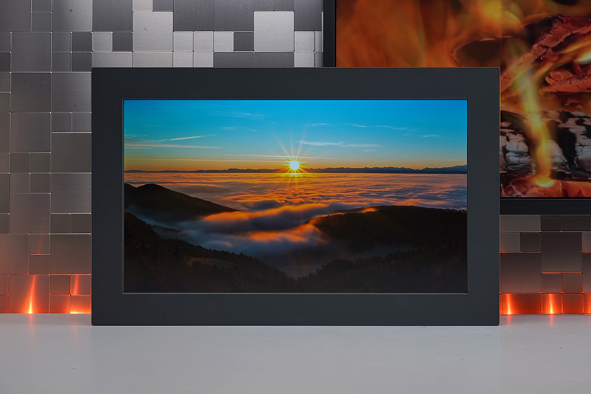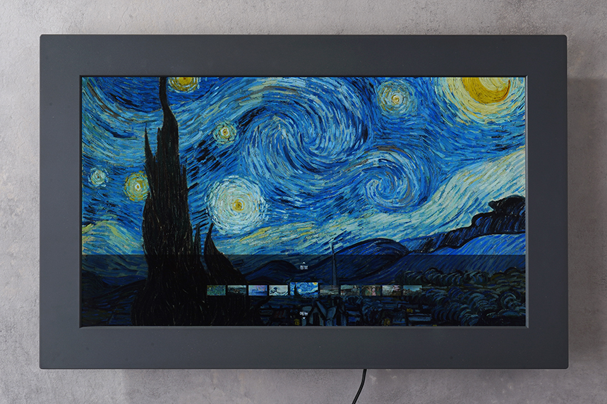 넷기어 뮤럴 MC315 디지털 액자의 전면에는 15.6인치 FULL HD IPS 디스플레이가 탑재되었습니다. 특히 붓 터치의 생생함을 전달하는 트루 아트 기술과 빛 반사를 줄여주는 안티 글레어 처리가 되어 있다는 점이 주목할 만한 부분입니다.