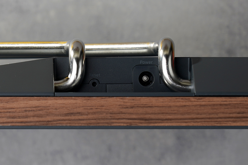 넷기어 뮤럴 MC315 디지털 액자의 테두리를 확인해 보면 프리미엄 월넛 우드 그레인이 적용되어서 아날로그 형태 액자와 같은 느낌을 줍니다. 그리고 바닥에 닿는 부분에는 고무 지지대가 배치되어 있습니다.