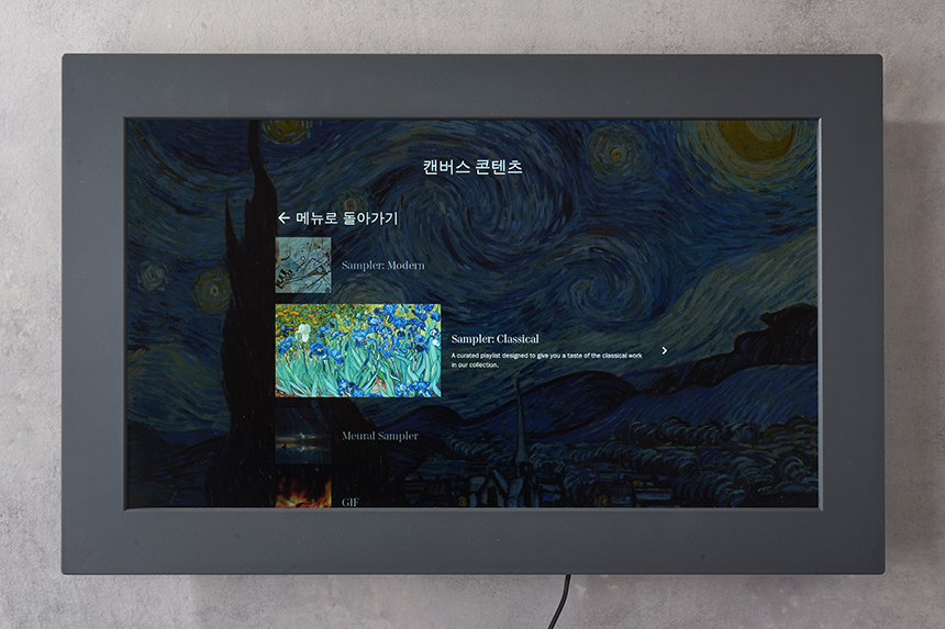 마지막으로 CANVAS에서는 넷기어 뮤럴 MC315 디지털 액자의 화면 밝기를 조절하거나 제스처 기능을 대체할 수 있는 버튼이 준비되어 있습니다. 상황에 맞춰 활용해주는 것이 좋을 것 같습니다.