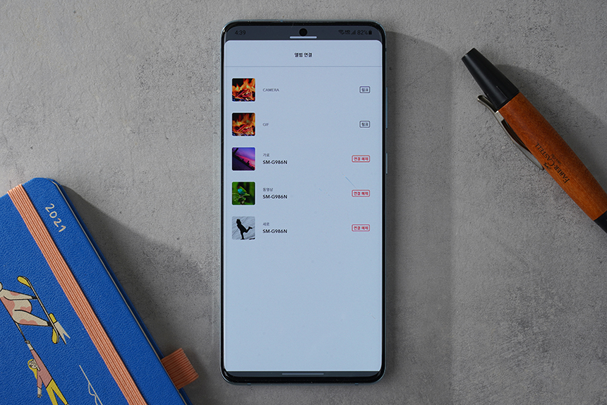 업로드를 선택하면 스마트폰에 저장된 사진이나 동영상을 넷기어 뮤럴 MC315 디지털 액자로 전송할 수 있습니다. 특히 특정 앨범과 동기화하면 새로운 사진이 추가될 때마다 자동으로 업데이트됩니다.