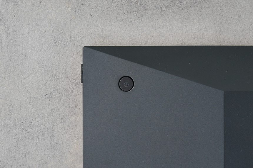 뒷면의 왼쪽을 살펴보면 전원 버튼이 배치되어 있는데요. 오른손으로 간편하게 조작할 수 있다는 장점이 있습니다. 장시간 자리를 비울 때는 꺼놓는 것이 좋을 것 같습니다.