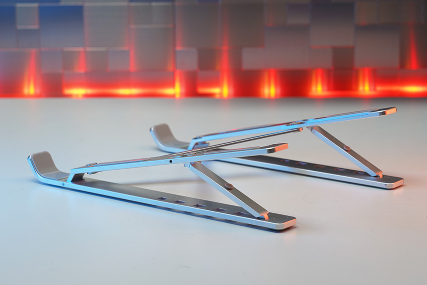 옆면을 살펴보면 몇 개의 알루미늄 조각들이 결합된 형태로 제작된 것을 확인할 수 있습니다. 그리고 약간 두꺼운 편이어서 무거운 노트북들도 문제 없이 거치할 수 있을 것 같습니다.