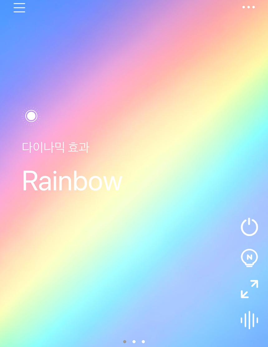 전용 앱의 홈 화면을 살펴보면 우선 언어는 한국어로 설정할 수 있고 다이나믹 효과나 엄선된 색상 등의 프리셋이 미리 준비되어 있는 것을 확인할 수 있습니다. 그리고 바로 편리하게 사용할 수 있습니다.