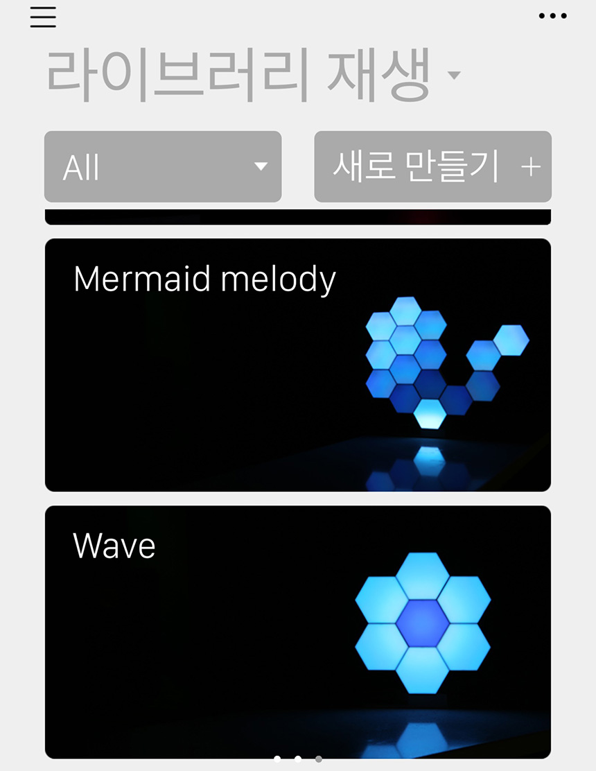 라이브러리 재생에서는 LifeSmart LED Quantum Light를 특정한 형태로 조립해서 다양한 패턴이 표시되기 만들어 줄 수 있습니다. 그리고 특정한 조립 방법이 필요하기 때문에 설명서를 잘 읽어 보아야 합니다. 그리고 자신의 취향에 맞게 커스텀할 수 있는 기능도 제공하고 있습니다.
