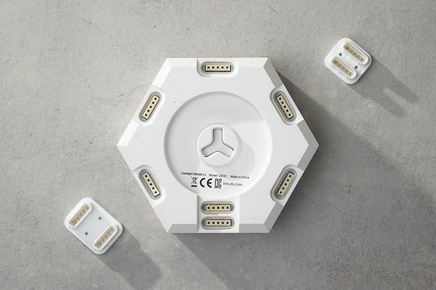 뒤쪽을 살펴보면 하나의 램프에 컨트롤러가 배치되어 있고 모서리 부분에 컨넥터가 준비되어 있습니다. 그래서 다른 제품들과 하나씩 연결해서 사용할 수 있습니다.