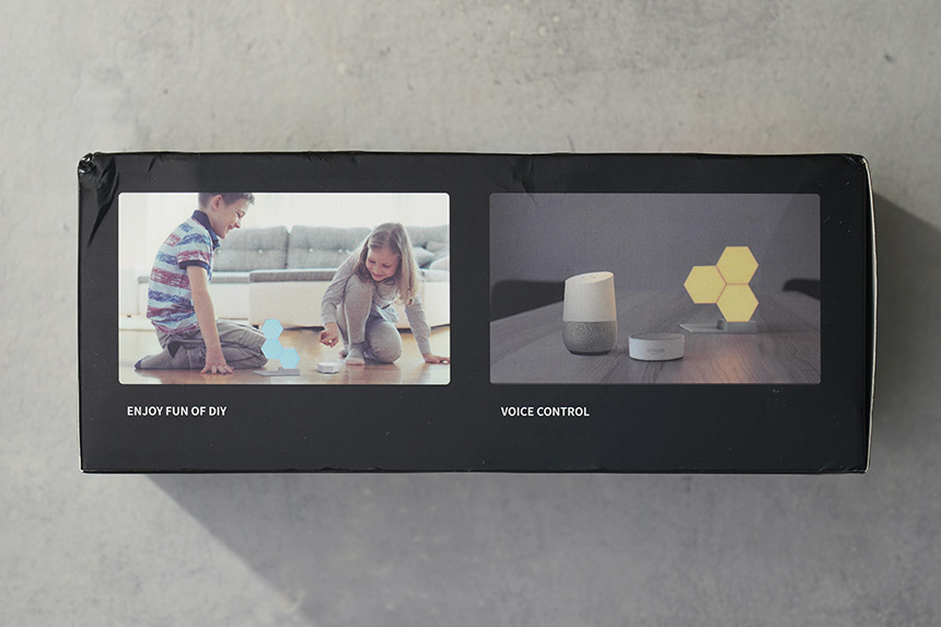 박스의 옆면을 LifeSmart LED Quantum Light의 주요 특징이 설명되어 있습니다. 차별화된 부분은 구글 어시스턴트에 등록해서 음성으로 활용할 수 있다는 점입니다.